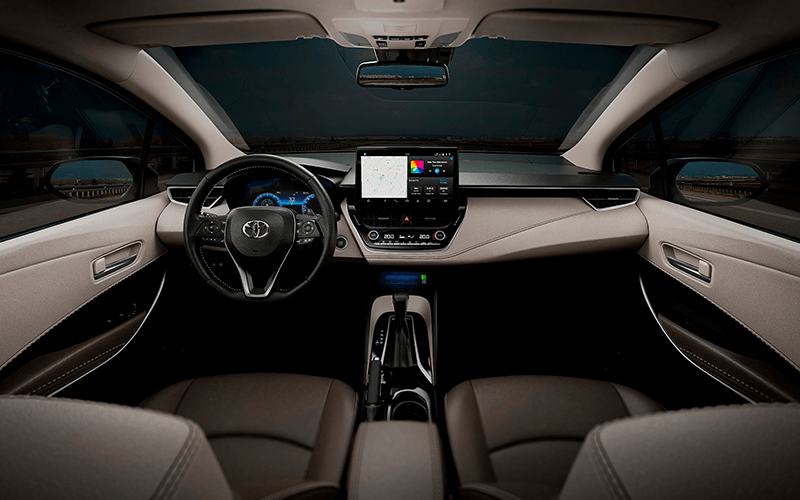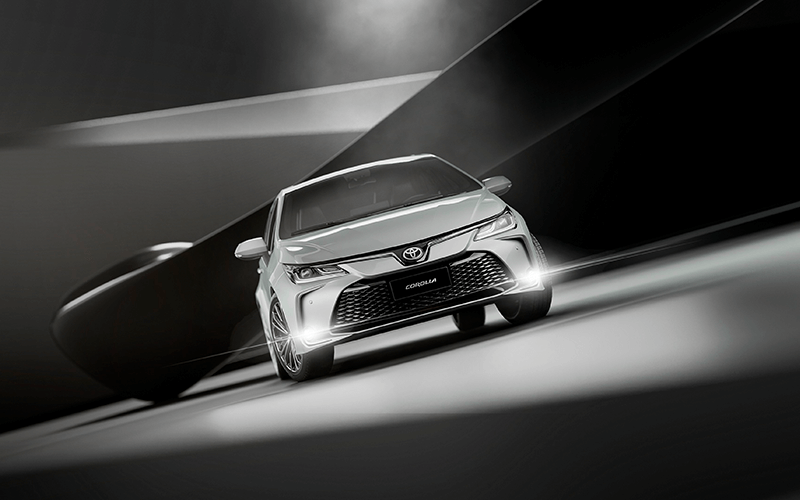 Nova grade frontal em black piano trazendo um design moderno e sofisticado estilo colmeia com toda a elegância de um Corolla, além de conjunto óptico dianteiro e traseiro full LED com assistência de farol alto automático.