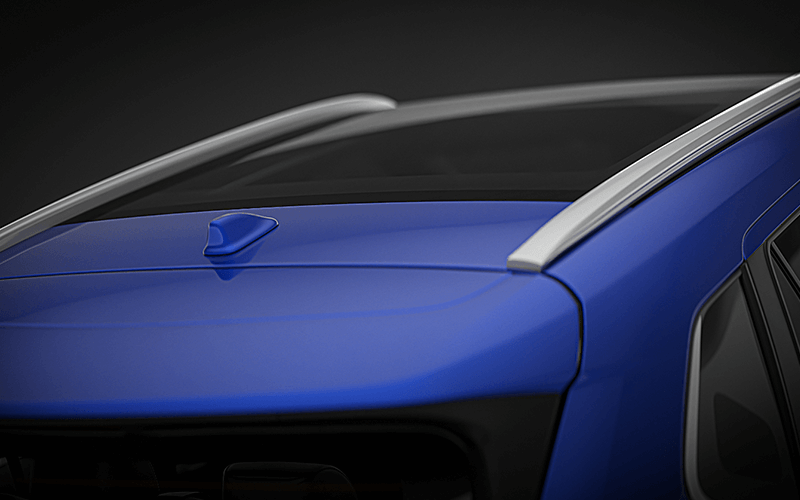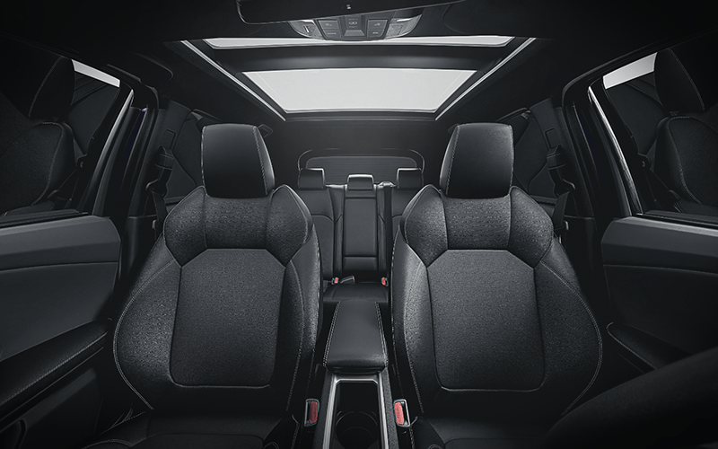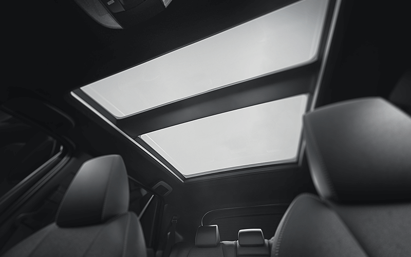 Design que combina robustez e fluidez para uma presença mais marcante, com rodas de 18" de liga leve com acabamento na cor preta, teto panorâmico fixo em vidro e revestimento de costura aparente no painel e portas com acabamento soft touch.